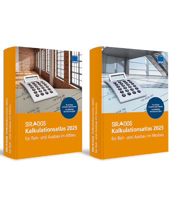 Mit dem SIRADOS Kalkulationsatlas erhöhen Sie jetzt Ihre Sicherheit bei der Prüfung und Wertung von Angeboten und Nachträgen. Die Ausschreibungstexte in Verbindung mit aktuellen Baupreisen und den Kalkulationsanteilen für Lohn, Material und Gerät gewährleisten eine objektive Preisprüfung und eine Beurteilung einwandfreier Ausführungen.